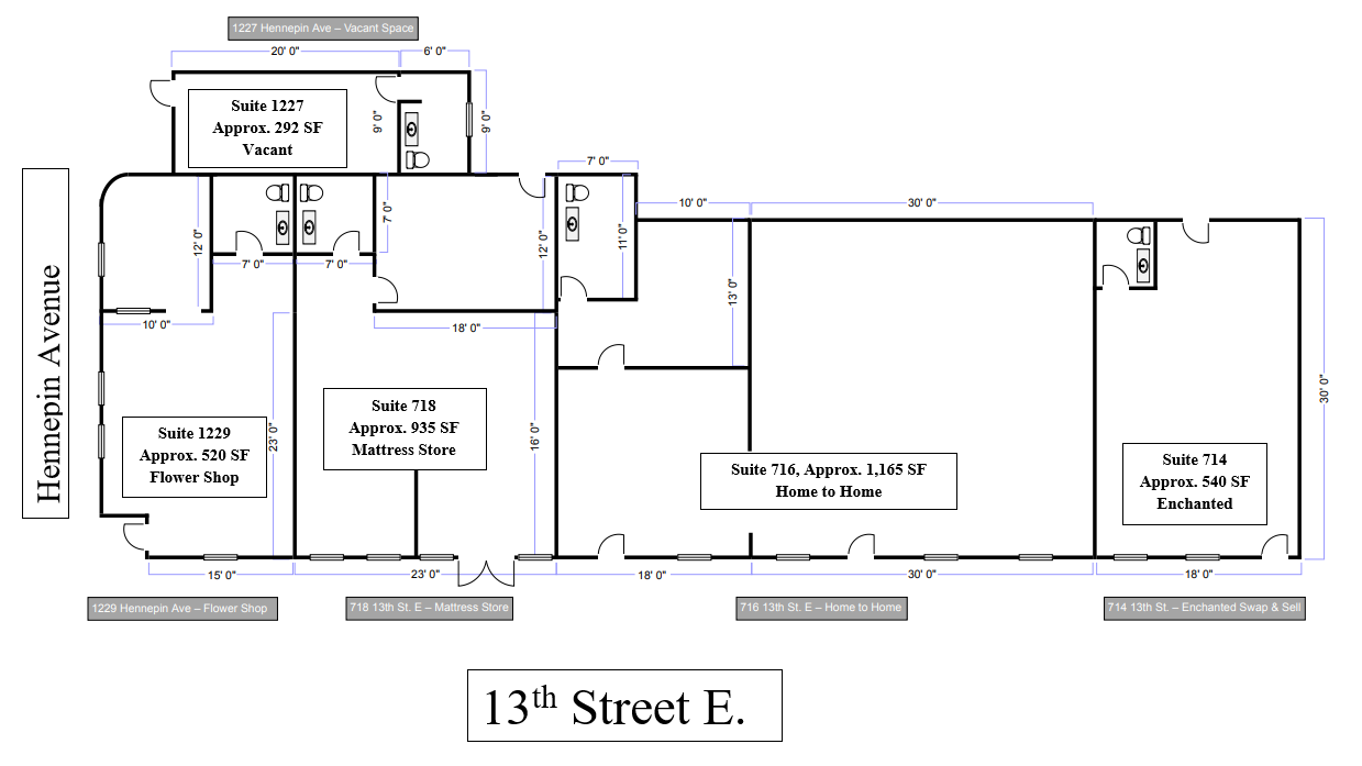 - 4 Retail/Office Spaces plus one 2-bedroom apartment on 2nd floor.